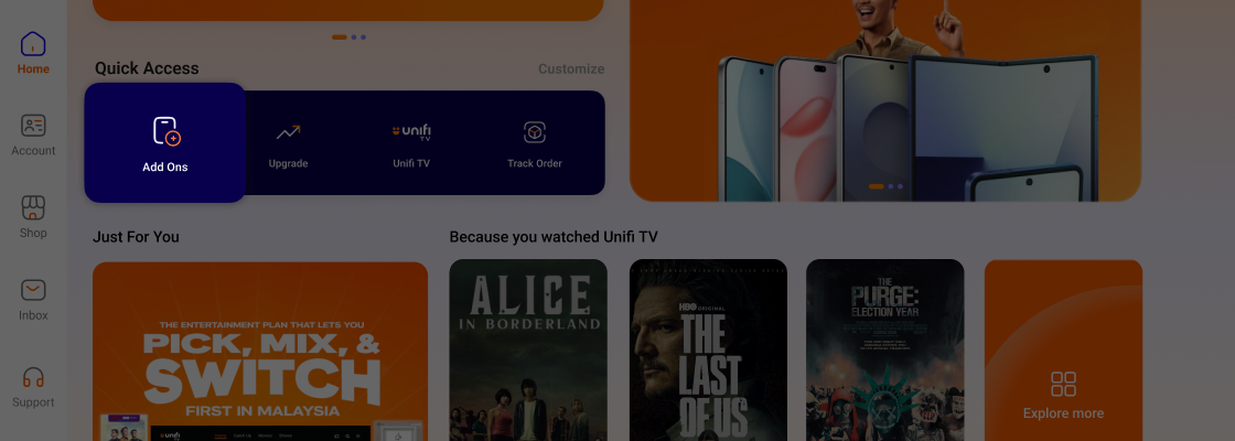 Pay device instalments in your monthly bill and get them at offer prices specially for existing Unifi customers only.