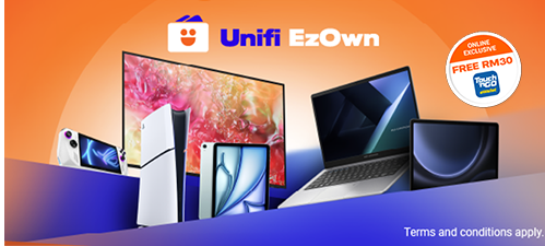 Own your dream phone today via Unifi EzOwn and claim RM50 TNG voucher for online purchase.